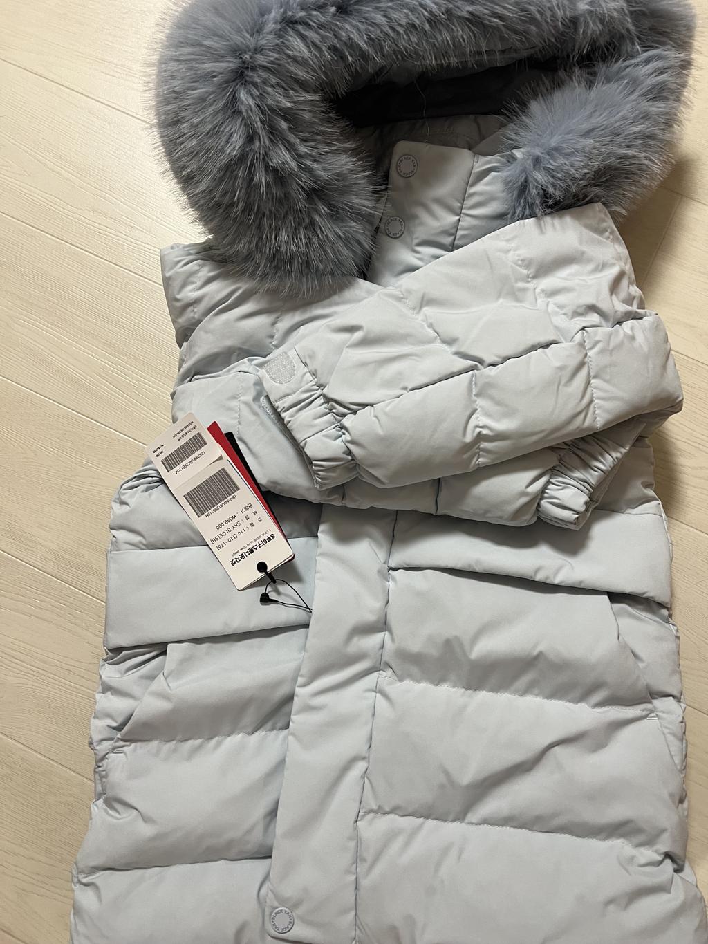 | 소재 | 겉감 : 폴리에스터 100%, 안감 : 나일론 100%, 충전재 : 깃털 20%, 충전재 : 우모(거위) 솜털 80%, 충전재2 : 폴리에스터 100%, 후드털 : 폴리에스터 100% |