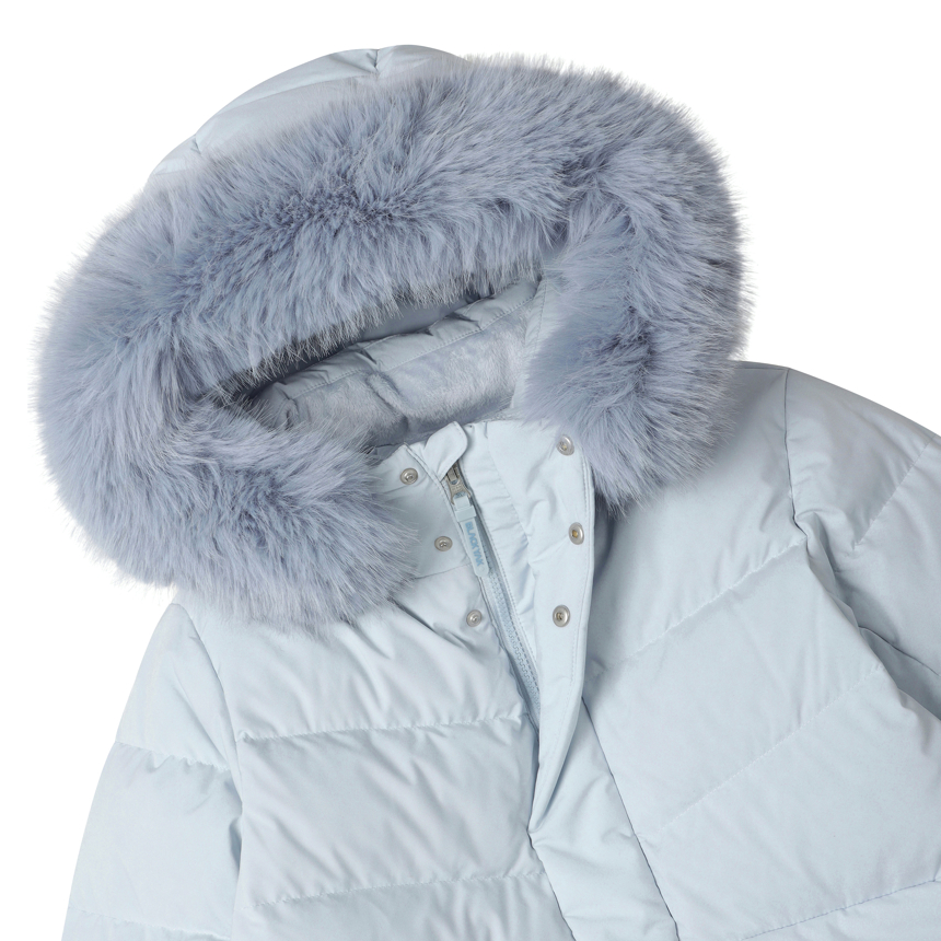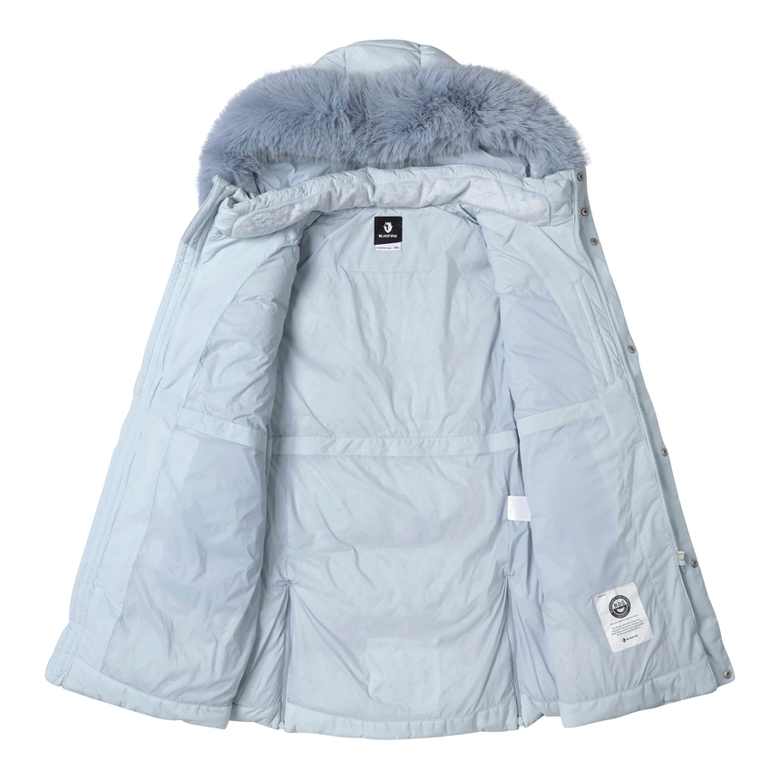 - 풍성한 퍼가 돋보이는 프리미엄 구스 롱 다운 자켓입니다.